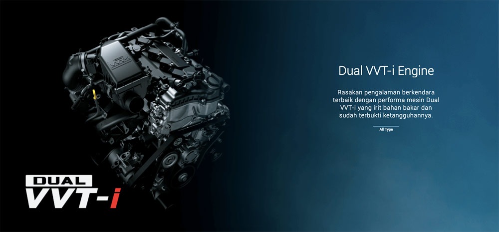 Tipe Mesin / Engine Type4 Cylinder in-line, 16 Valve DOHC with Dual VVT-i4 Cylinder in-line, 16 Valve DOHC with Dual VVT-i4 Cylinder in-line, 16 Valve DOHC with Dual VVT-i